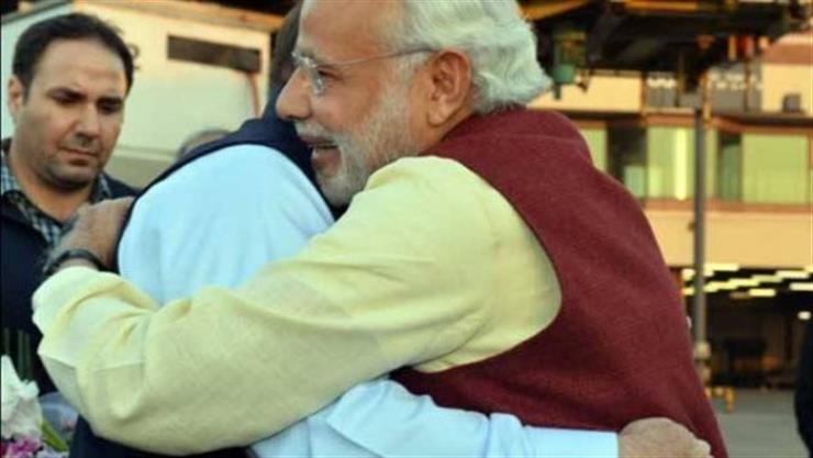 Indian PM Narendra Modi appears all cheerful hugging Pak Prime Minister Nawaz Sharif